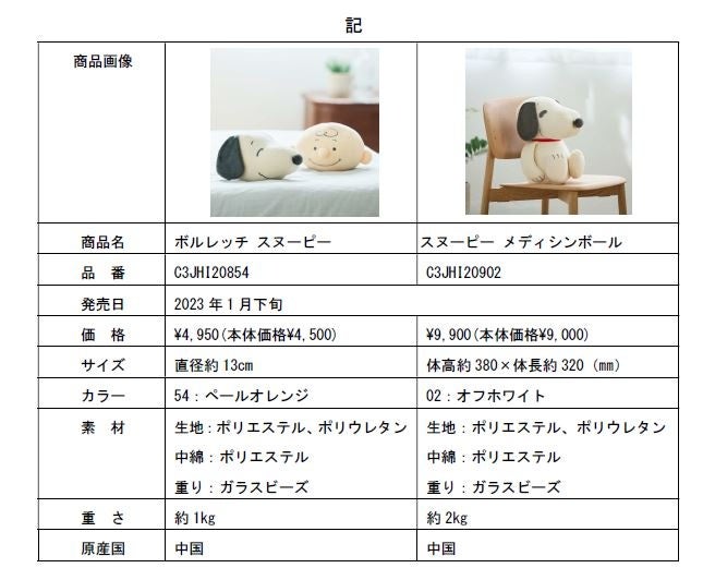 「ボルレッチ スヌーピー」と「スヌーピー メディシンボール」は、以下「ピーナッツ」公式ショップでも販売予定です。