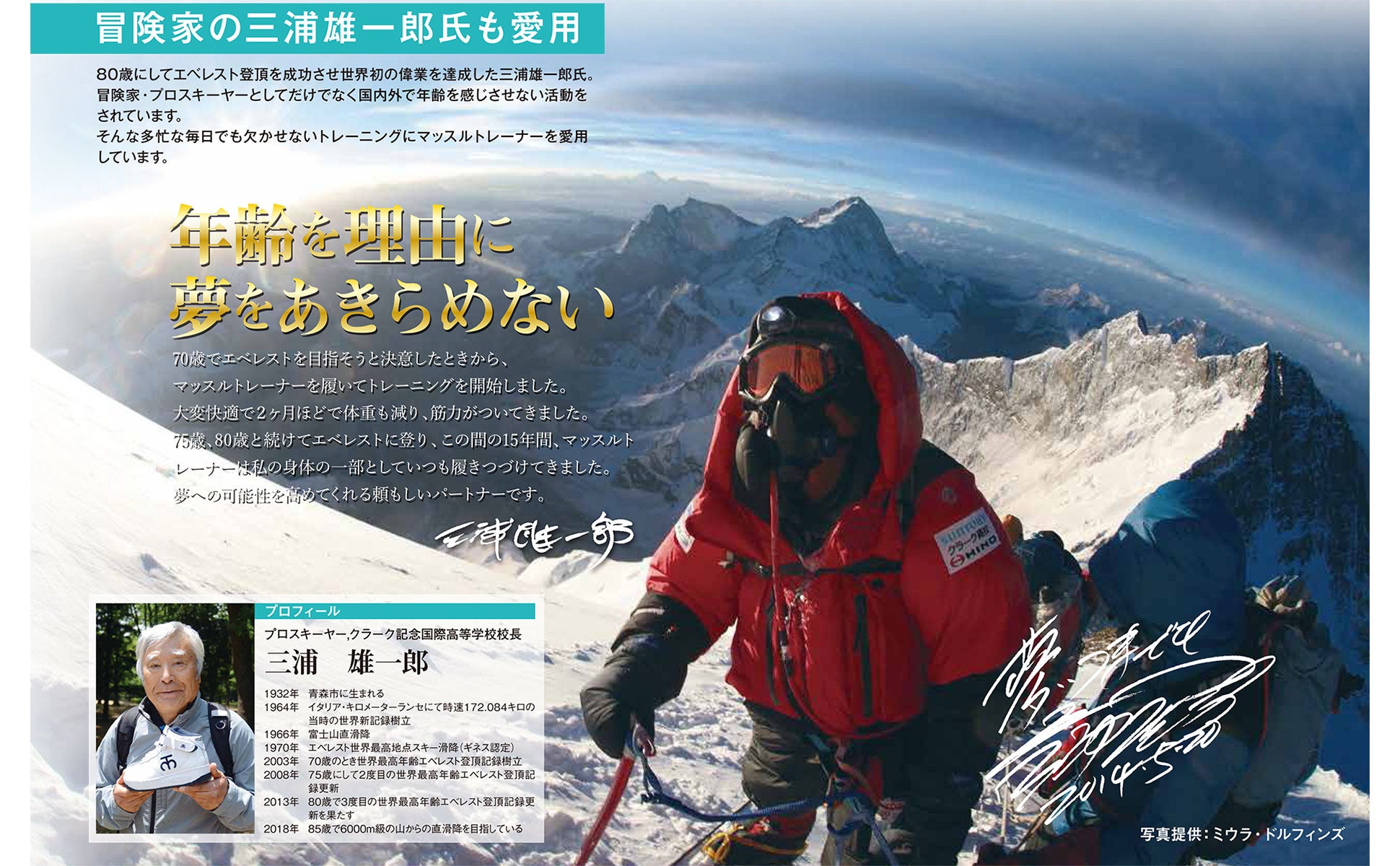 冒険家・プロスキーヤーの三浦雄一郎さんもマッスルトレーナーシリーズを愛用しています。