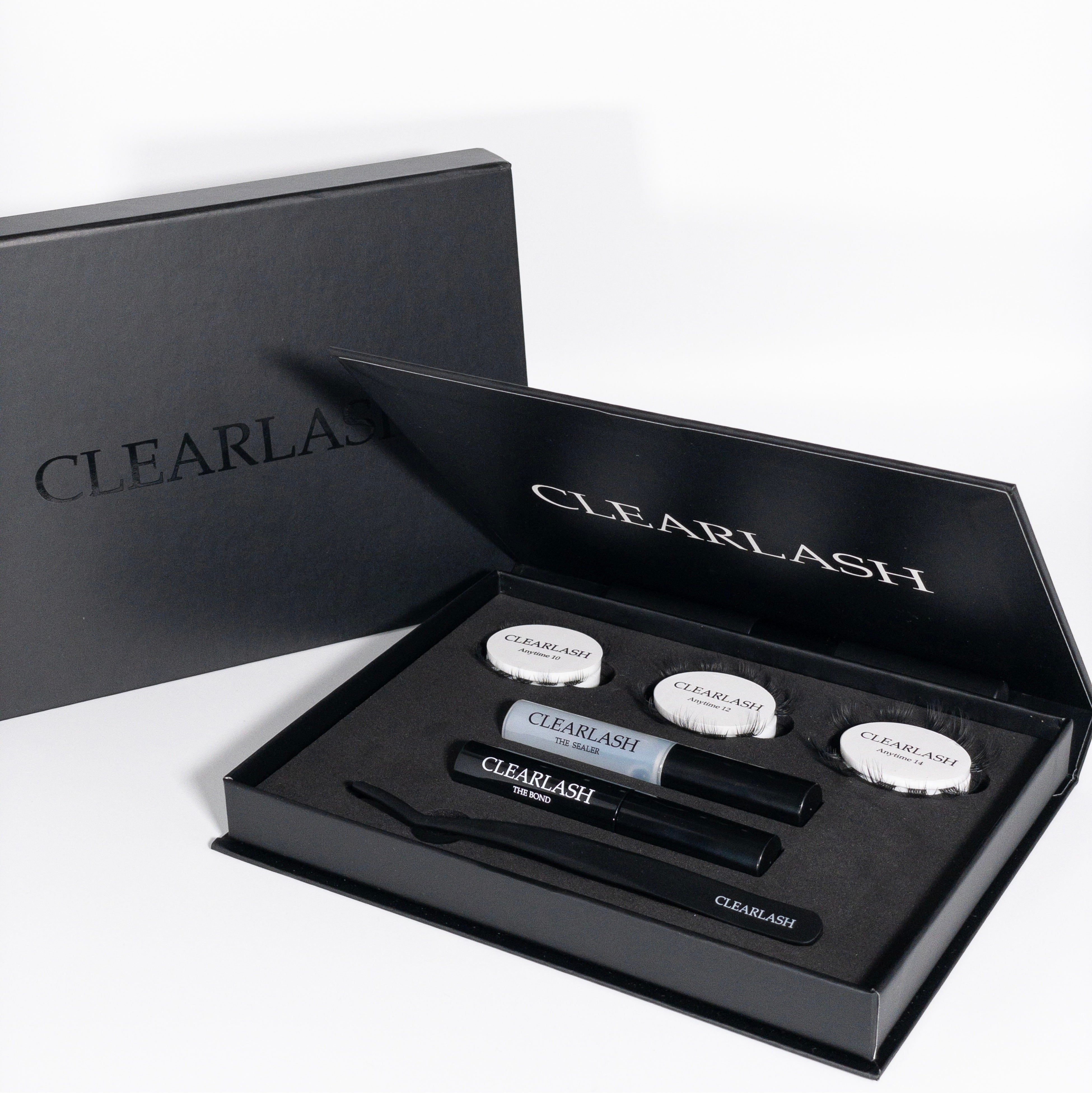 CLEARLASHに必要なもの全てが揃ったスタートキット。オリジナルパッケージは、そのまま保管ケースとしてもご使用いただけます。お好みのまつげの長さを見つけていただけるように、10mm 12mm 14mm 全てのサイズを詰め込んでいます。
