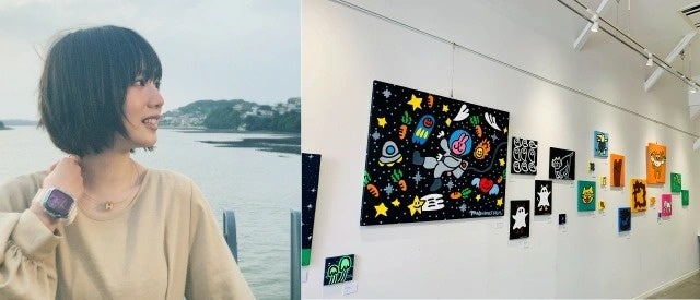 「まゆワッサン」は、GROGというメーカーのペンを駆使し、アクリル絵の具を使い、生き物を中心にカラフルな作品を制作し、全国でキャンバスアートの個展を開催。また、動画クリエイターとしてYou Tubeで日常Blogを発信。半年で1万人のチャンネル登録者を達成した。作品はどこか不思議でポップな世界観を表現し、人気を博しています。