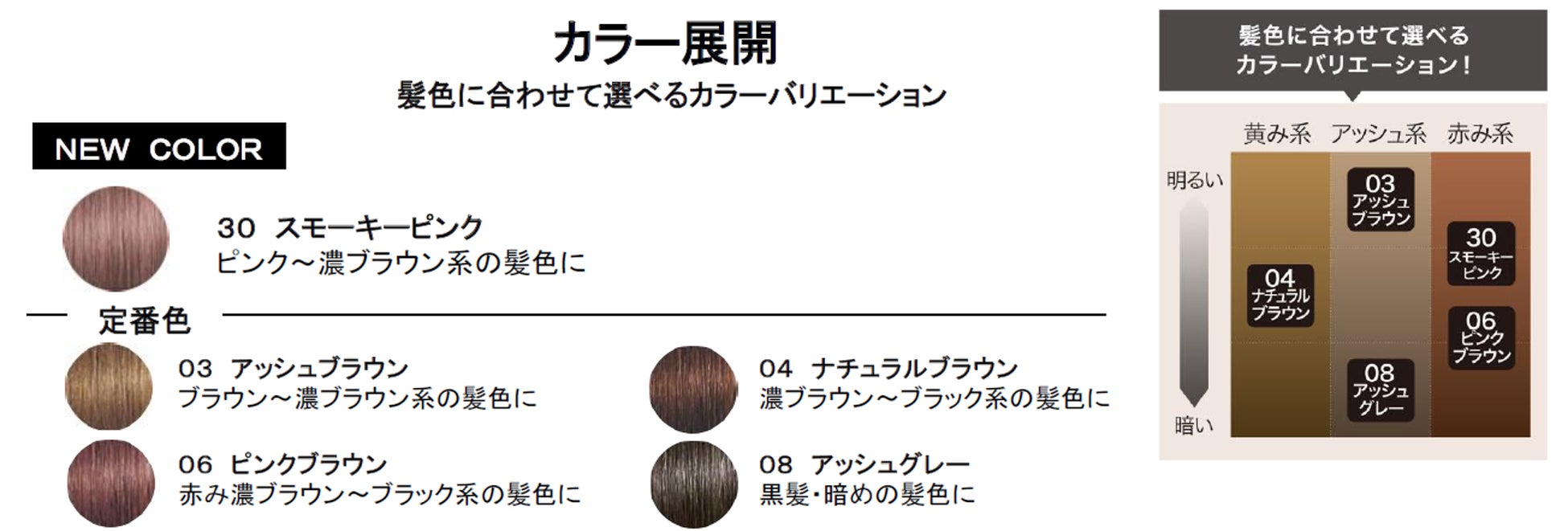 ピンク~濃ブラウン系の髪色に合わせやすいくすみピンクの新色。