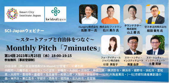 「子どもを願うすべての人によりそい 幸せな人生を歩める社会をつくる」をビジョンに掲げ、LINEを活用した妊活コンシェルジュサービス「famione(ファミワン)」 https://lp.famione.com/ を提供する株式会社ファミワン(本社:東京都渋谷区、代表取締役:石川勇介、以下当社)の代表石川は、1月25日に開催されるSCI-Japan(一般社団法人スマートシティ・インスティテュート)ウェビナーとフォーアイディールジャパン株式会社との共催企画『Monthly Pitch「7minutes」~五方よし スタートアップが持続可能な日本をつくる!~』に登壇いたします。