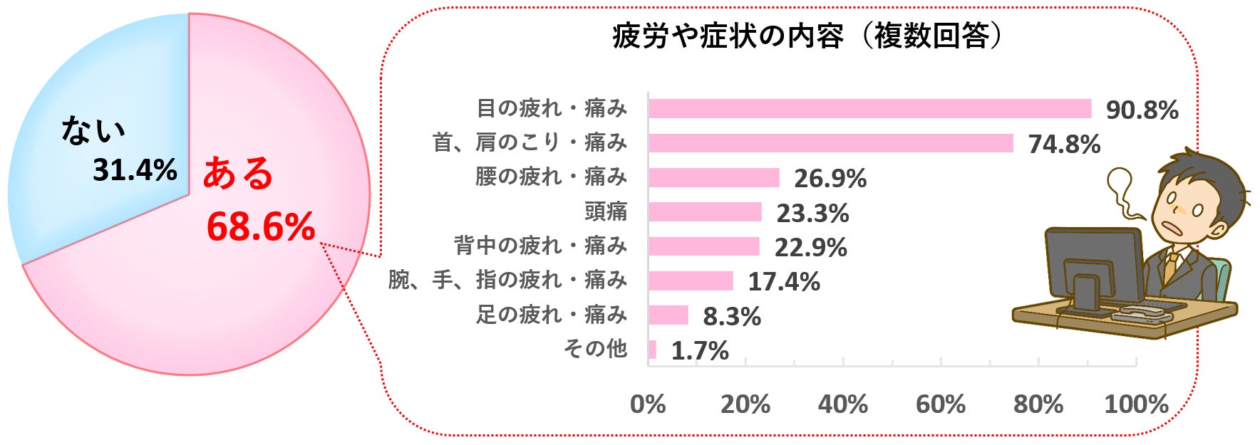 図1:仕事でのVDT作業で身体的な疲労や症状がある人の割合とその症状の内容