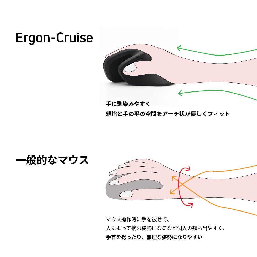 手首の疲れ・肩こり対策に!握りやすいアーチ型ワイヤレスマウス「Ergon-Cruise」をガジェットストア「MODERN g」で販売開始