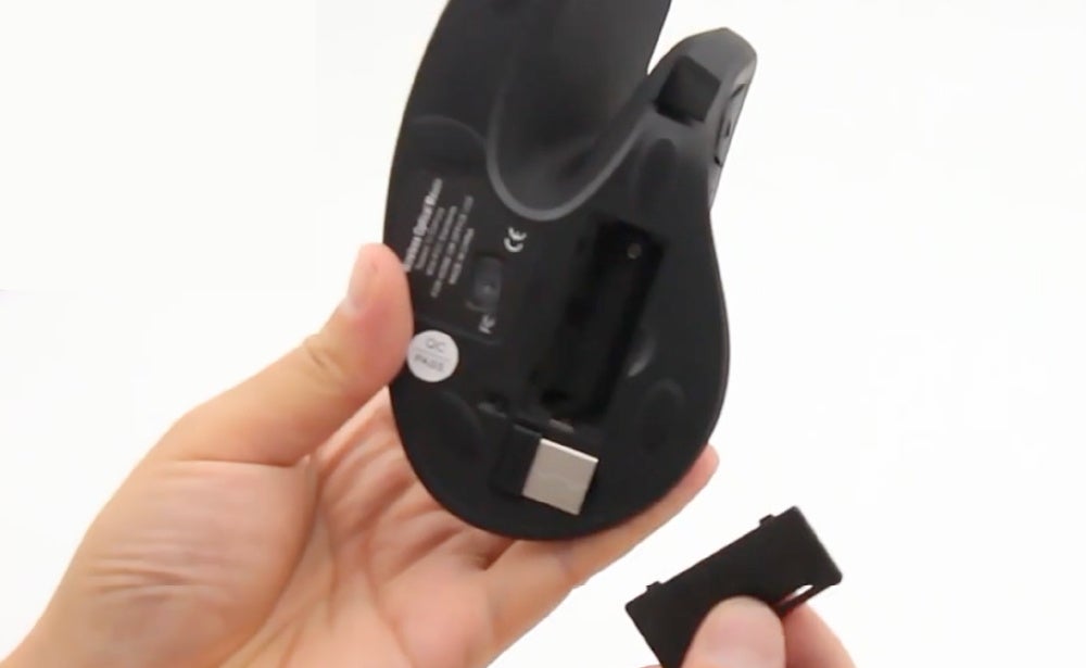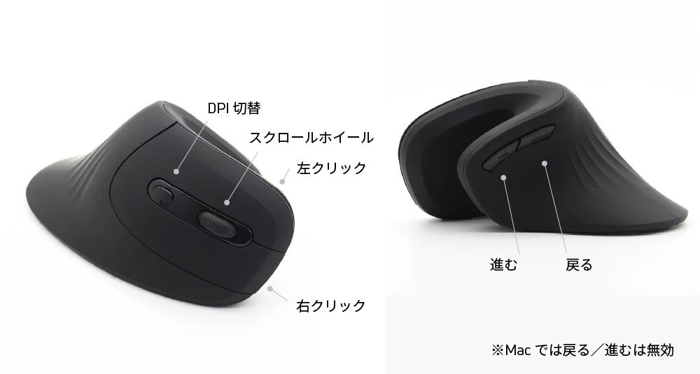 ●人間工学に基づいた形状の縦型(垂直型)マウス、親指から手を自然な形で沿わせて操作ができる