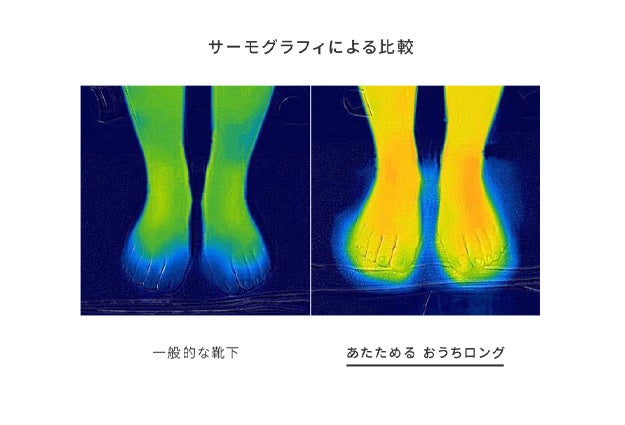 足は身体の中で末端に位置しているため、血液が行きわたりにくく、特に冷えやすい部位と言われています。ケアソク〈あたためる〉は足本来の熱を逃がさず保護することで、足もとの冷えを予防・緩和。従来のフットウェアよりも長時間の保温効果が持続します。