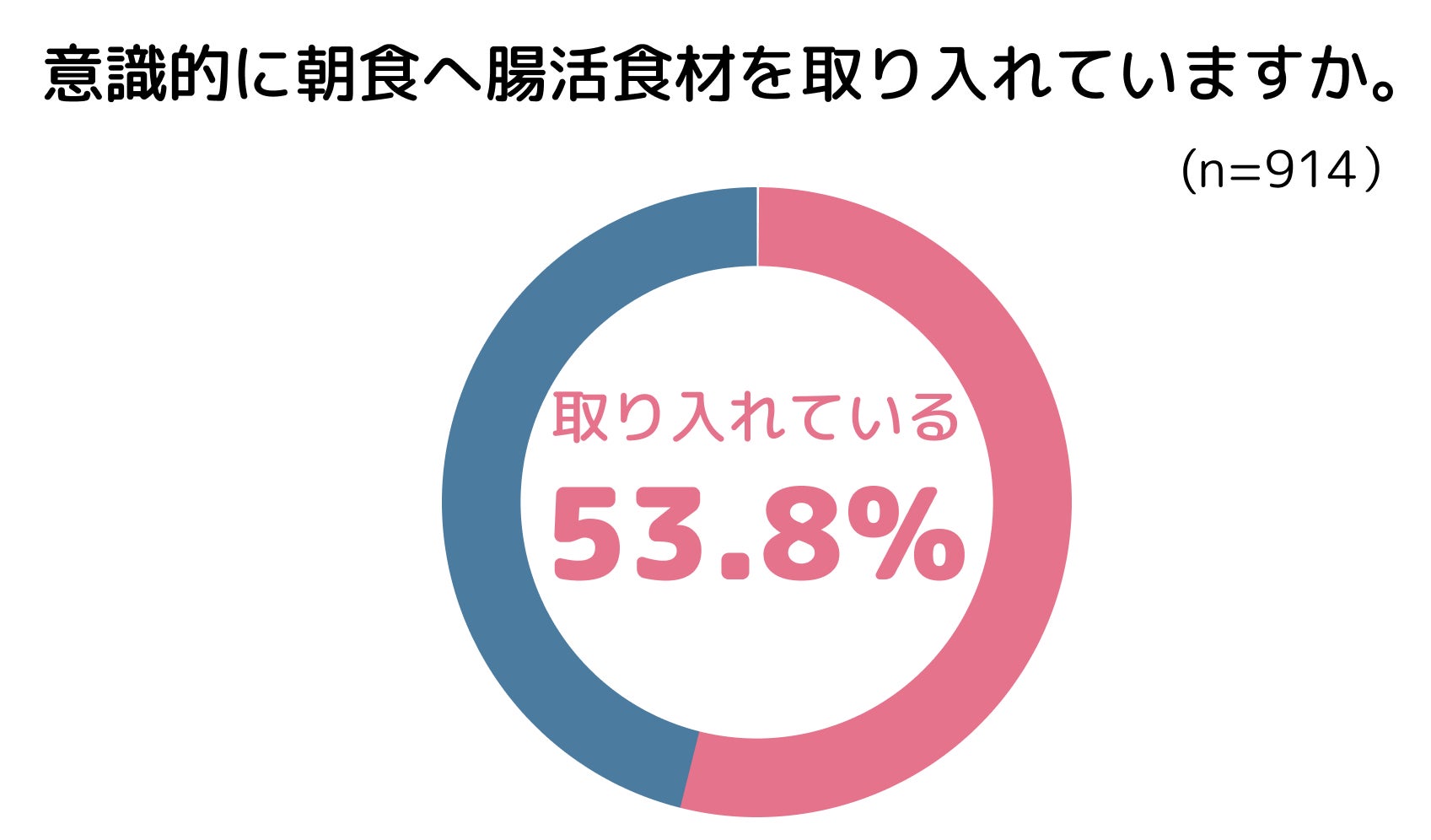 本調査を通じて、快便の自覚がある人の2人に1人が、朝食でも腸活を意識していることが明らかになりました。腸内環境改善に対する意識向上によって、朝食習慣の改善およびその内容に変化をもたらす可能性があると考えられます。