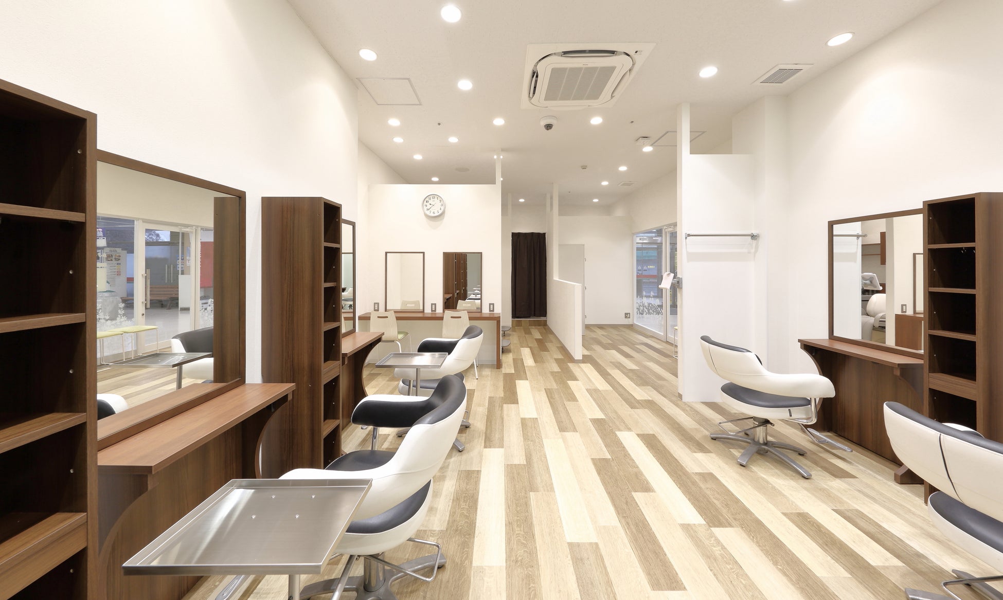 施術後は、セルフブローブースで、自分で髪を乾かしたり、スタイリング剤などを自由に使用できます。スーパー内の一角など、買い物ついでに立ち寄りやすい立地に出店し、関東圏と関西圏に66店舗(※)を展開しています。