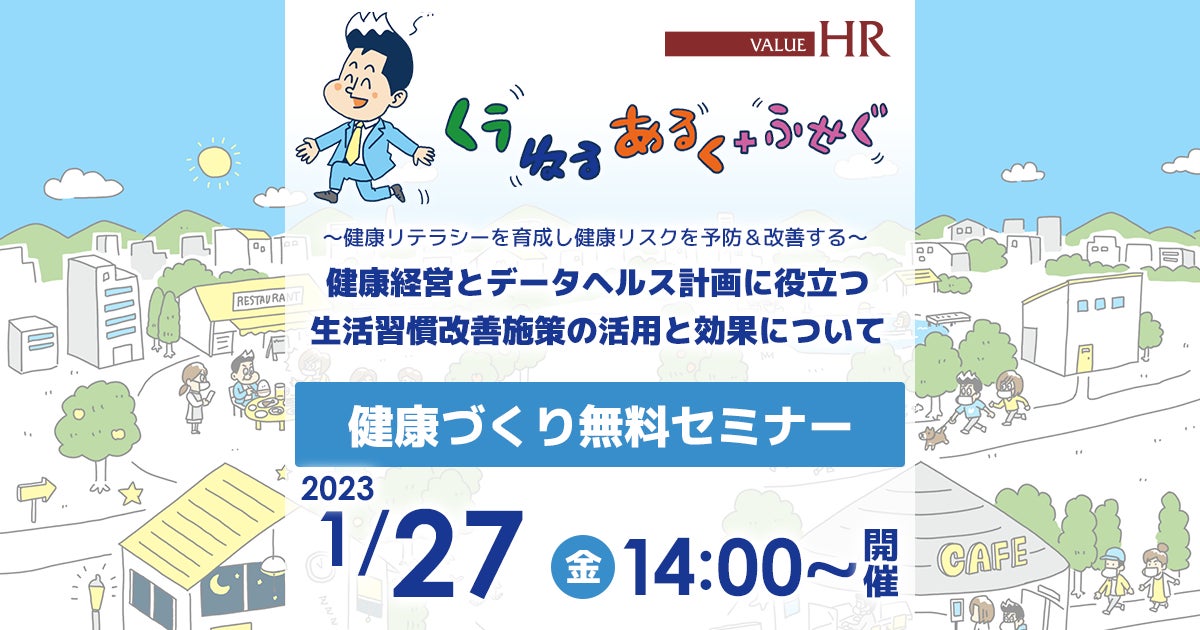 「健康管理のインフラ」サービス提供会社として2年連続で健康経営銘柄に選定されたバリューHRが、2023年1月27日(金)にオンライン形式での無料セミナーを開催いたします。
