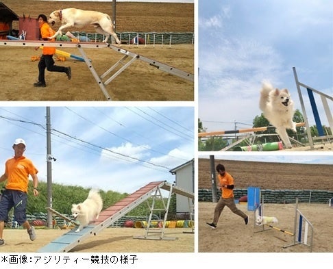 ∙ アジリティー:犬と人間がペアになって一緒に走り、タイムを競う障害物競走。