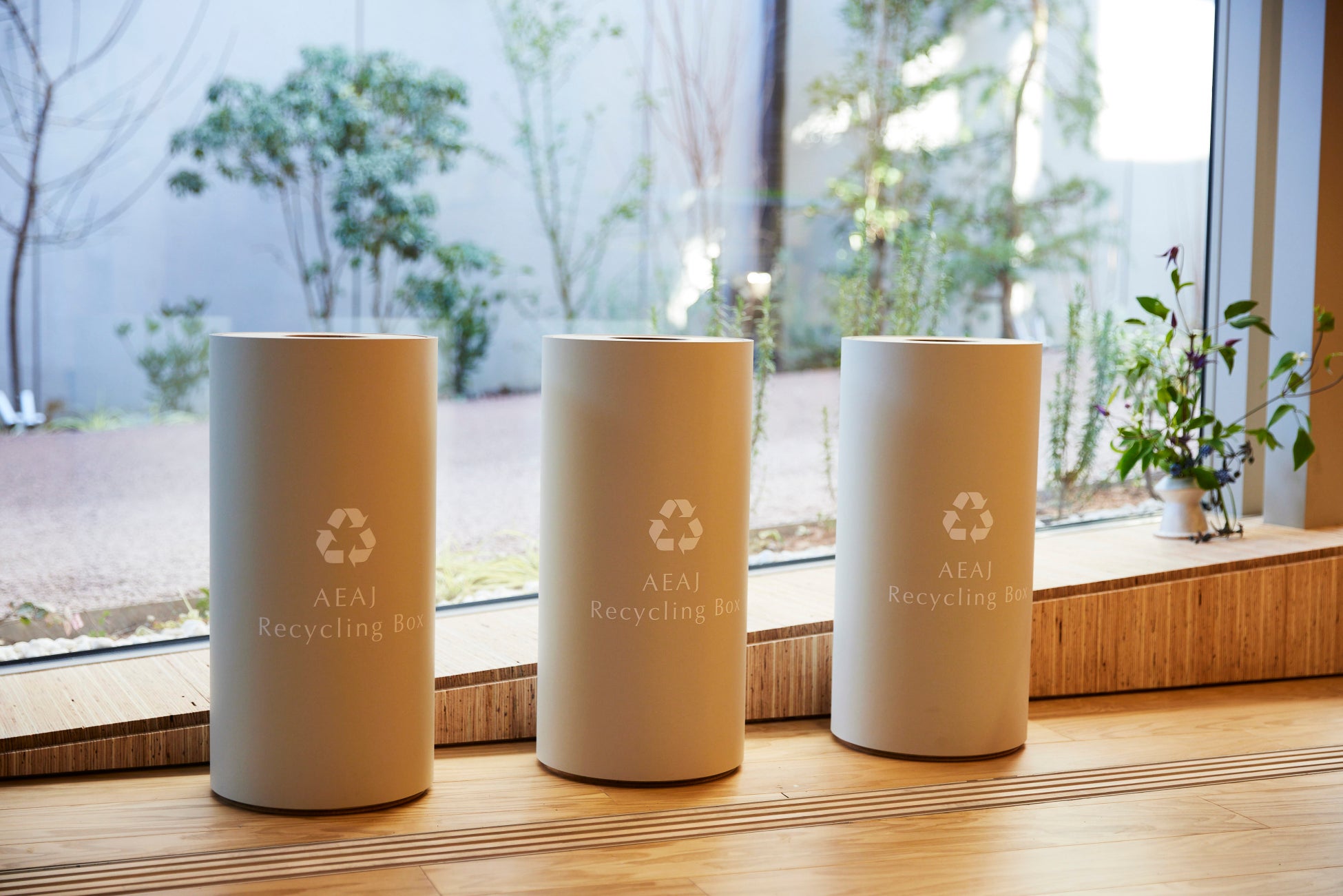 精油を使用したあとの空きビンをリサイクル原料として活用するため、精油ビン回収ボックス「AEAJ Recycling Box」を設置。どなたでも不要になった精油ビンをお持ちいただけます。