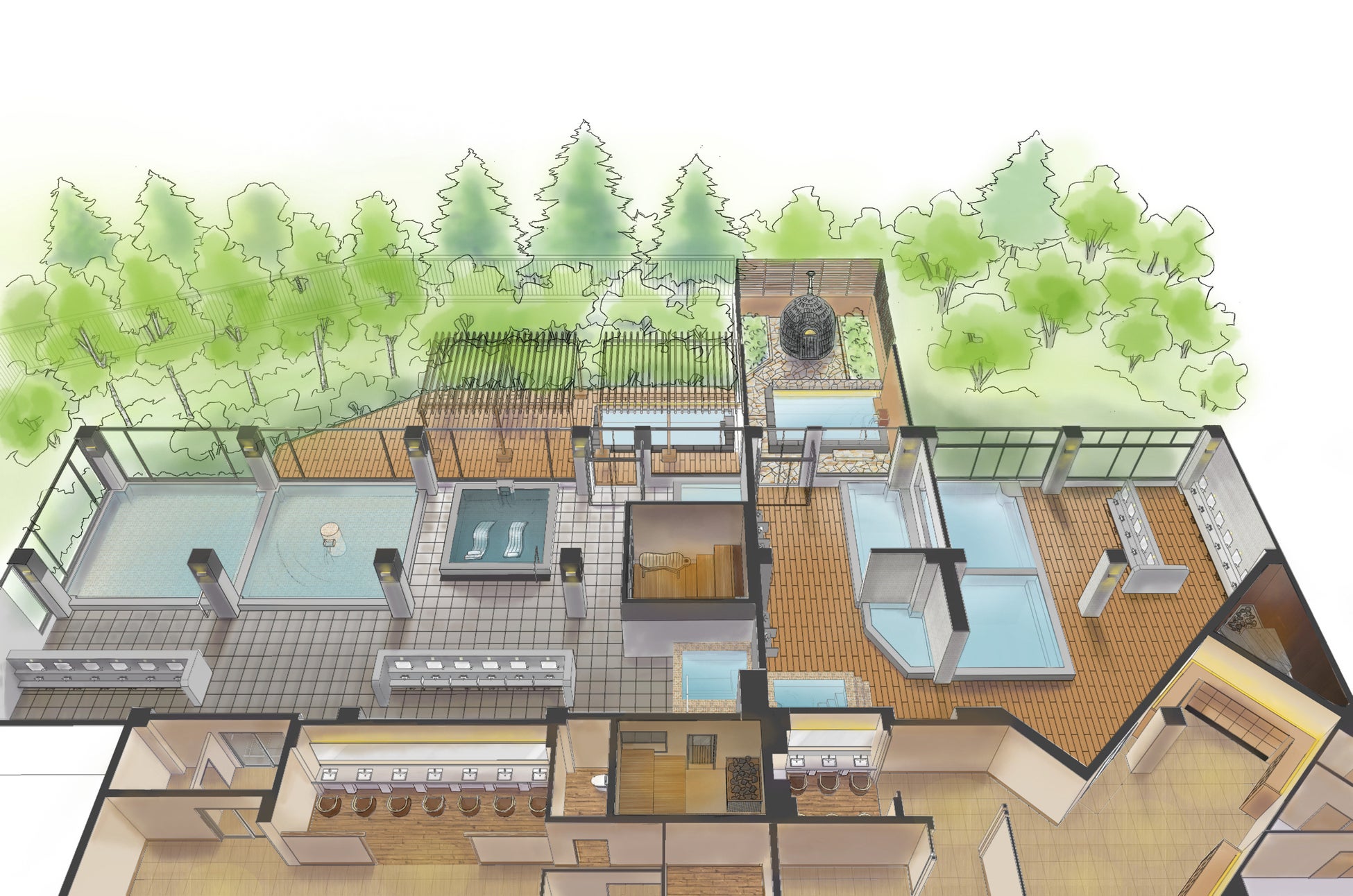 桑島さんとまた一緒にサウナがつくれて、とても嬉しく思っています。今回は大浴場全体リニューアルのうち3種のサウナを担当させてもらいました。KIKIのサウナは、デザインとかインパクトっていうよりも、サウナが好きな人にとって居心地よく過ごせるかどうかにこだわりました。特にナチュラルリゾートのスパだから、肩の力を抜いてとにかくゆっくりしてもらいたかった。 “没入感”“ゴロゴロ寝っ転がる”“セルフウィスキング”と、サウナーが喜ぶサウナを作れたと思います。北こぶし知床のサウナが景色とデザインで華やかなサウナだとしたら、KIKIのサウナはそれとは対照的に「内側に」向いていくサウナ。森に囲まれたこの場所で、じっくりゆっくり癒されてほしいです。