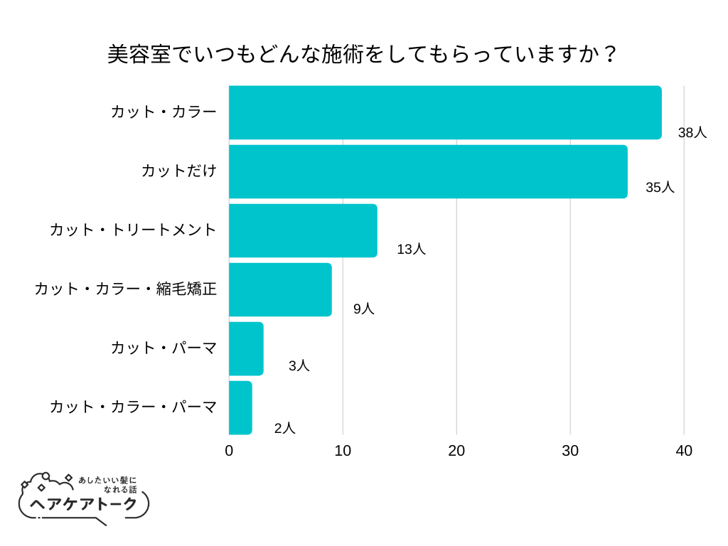 「美容室でいつもどんな施術をしてもらっていますか?」とアンケート調査した結果、1位は『カット・カラー』でした。