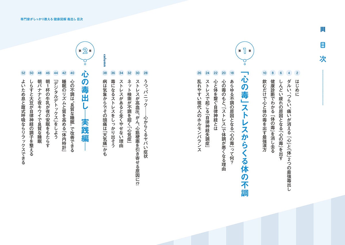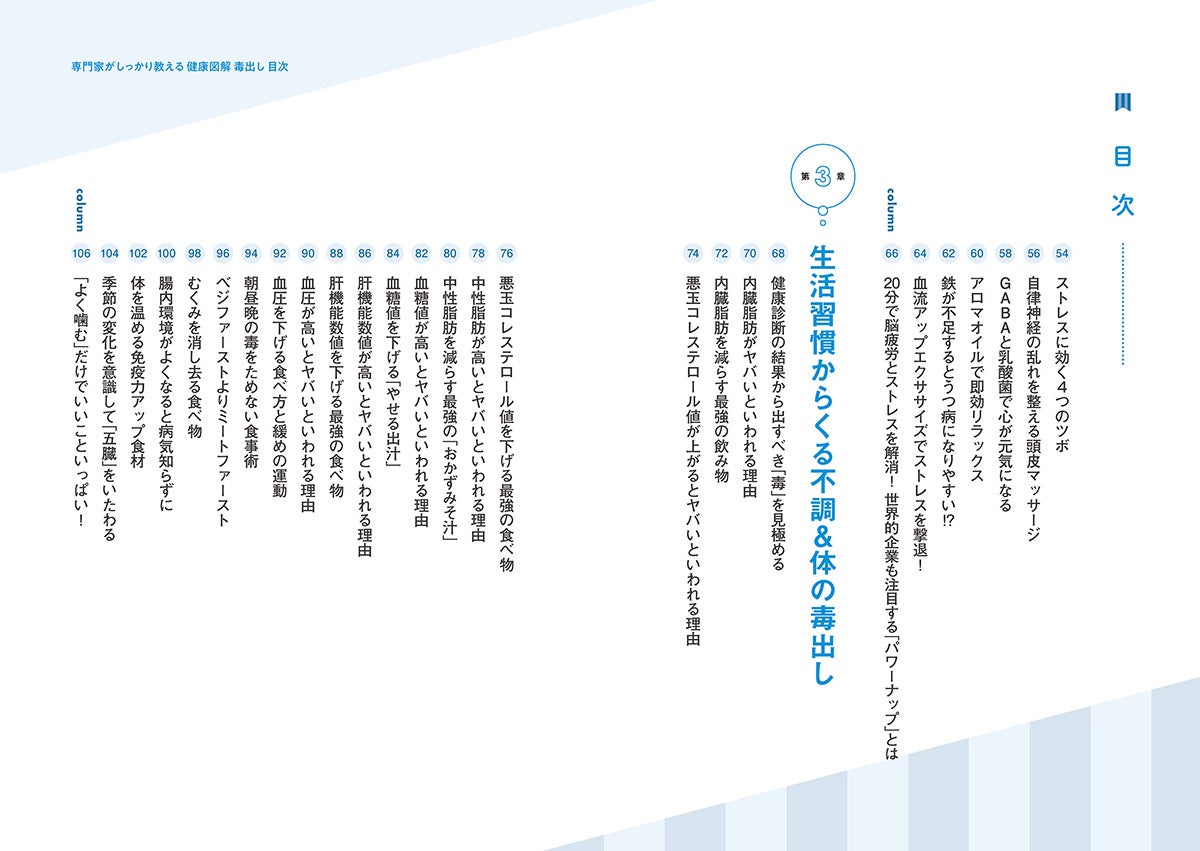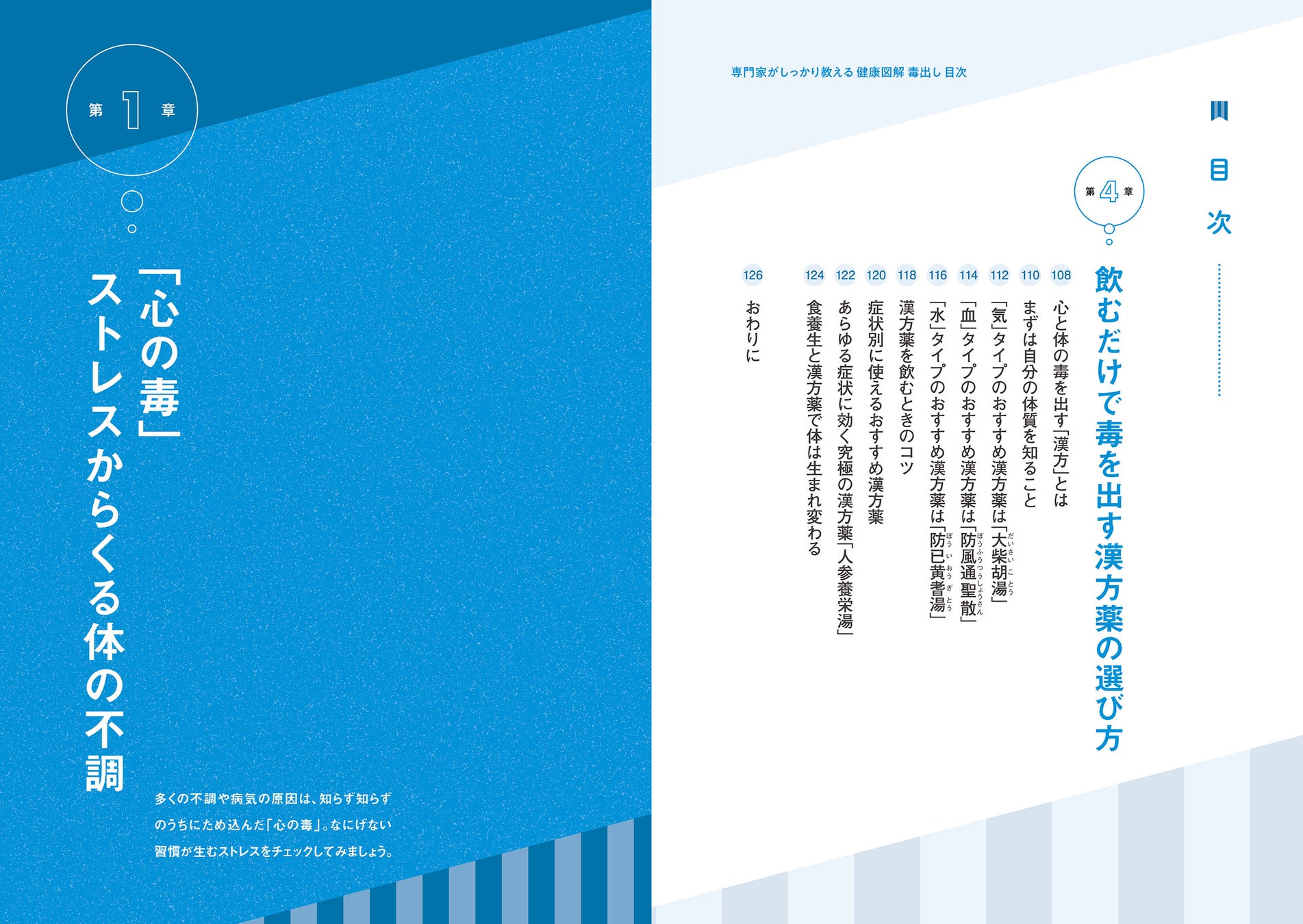 また、漢方医でもある著者による、『飲むだけで毒を出す漢方薬の選び方』まで幅広く紹介。