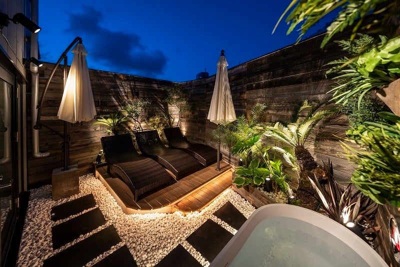 全個室にロウリュウ可能なフィンランド式サウナ、水風呂を完備し、加えて屋外で外気浴が堪能できる都会では類を見ない特別な空間を提供します。
