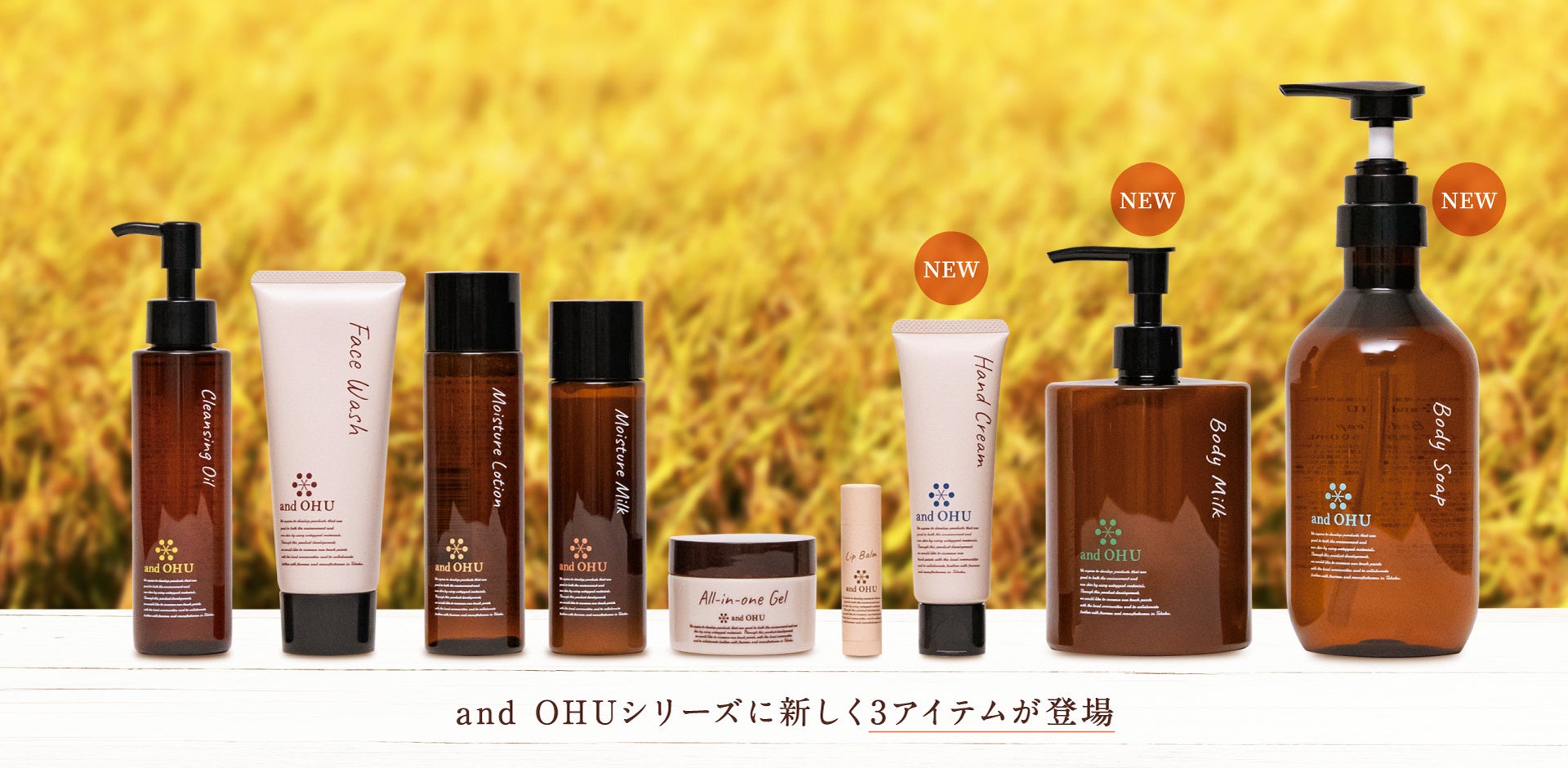 「and OHU(アンオフ)」は薬王堂ホールディングスグループと、岩手県奥州市にラボを持ち独自の発酵技術で未利用資源を再生・循環させる社会を構築する研究開発型スタートアップの株式会社ファーメンステーションが共同開発した、東北の自然素材や副産物などの未利用資源をアップサイクルした素肌と環境にやさしいスキンケアです。