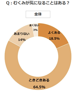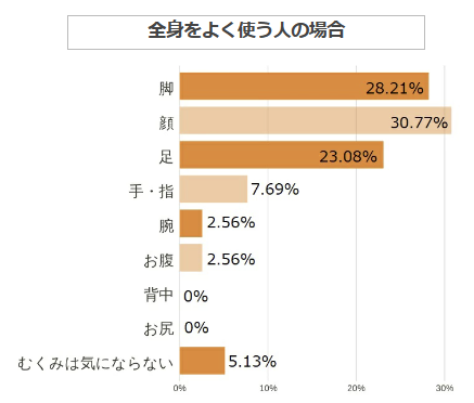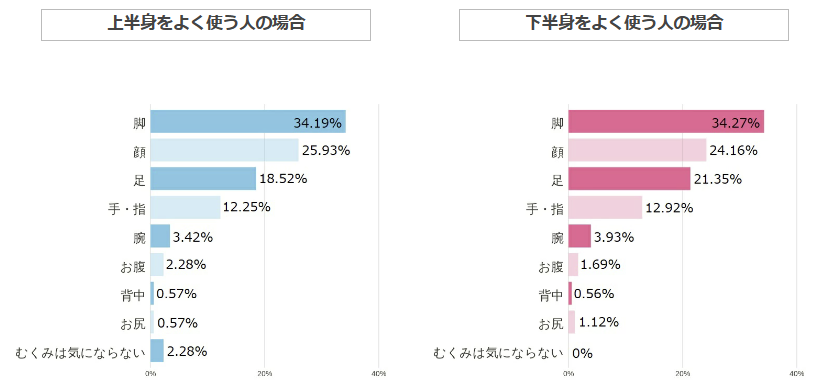 この結果からもわかるように、体を動かすことが多い・少ないに拠らず、“むくみ”は誰にでも、また体のどの部分にも起こり得るものだと言えるでしょう。