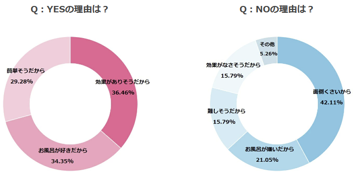 むくみ解消の入浴法について、“試してみたい”という人が9割ということですが、1割はNOと回答しています。 その理由としてトップに来たのが“面倒くさいから”。
