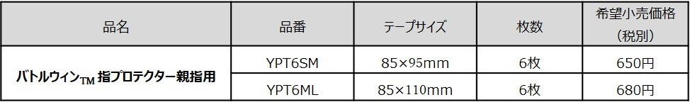 ニチバン株式会社(本社:東京都文京区、社長:高津敏明)は、テーピングテープのトップブランド「バトルウィンTM」から、腱鞘サポートテープ「バトルウィンTM 指プロテクター親指用」を2023年2月1日より、全国の薬局・薬店、ドラッグストア、スポーツ専門店などで発売します。