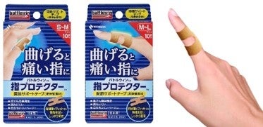 「バトルウィンTM 指プロテクター」は、曲げると痛い指に貼り付けることで可動域を制限しサポートできる、指専用のテーピングテープです。