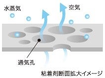 ・粘着剤に通気孔を設け、空気や水蒸気を通しやすくしたことで