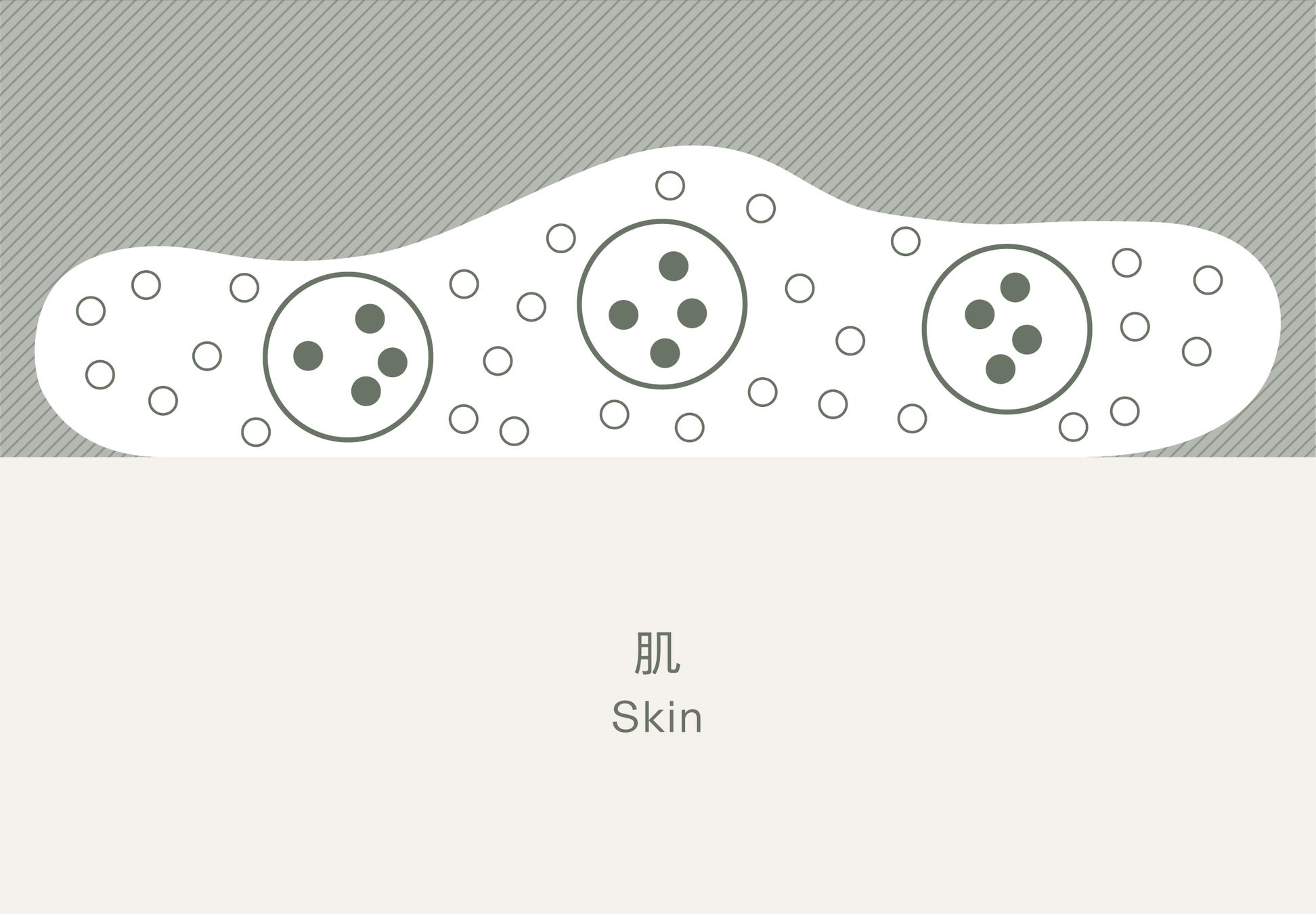 塗布後はカプセルの油分によって肌のうえに膜が形成され、うるおいのヴェールがひと晩中肌を包み込みます。