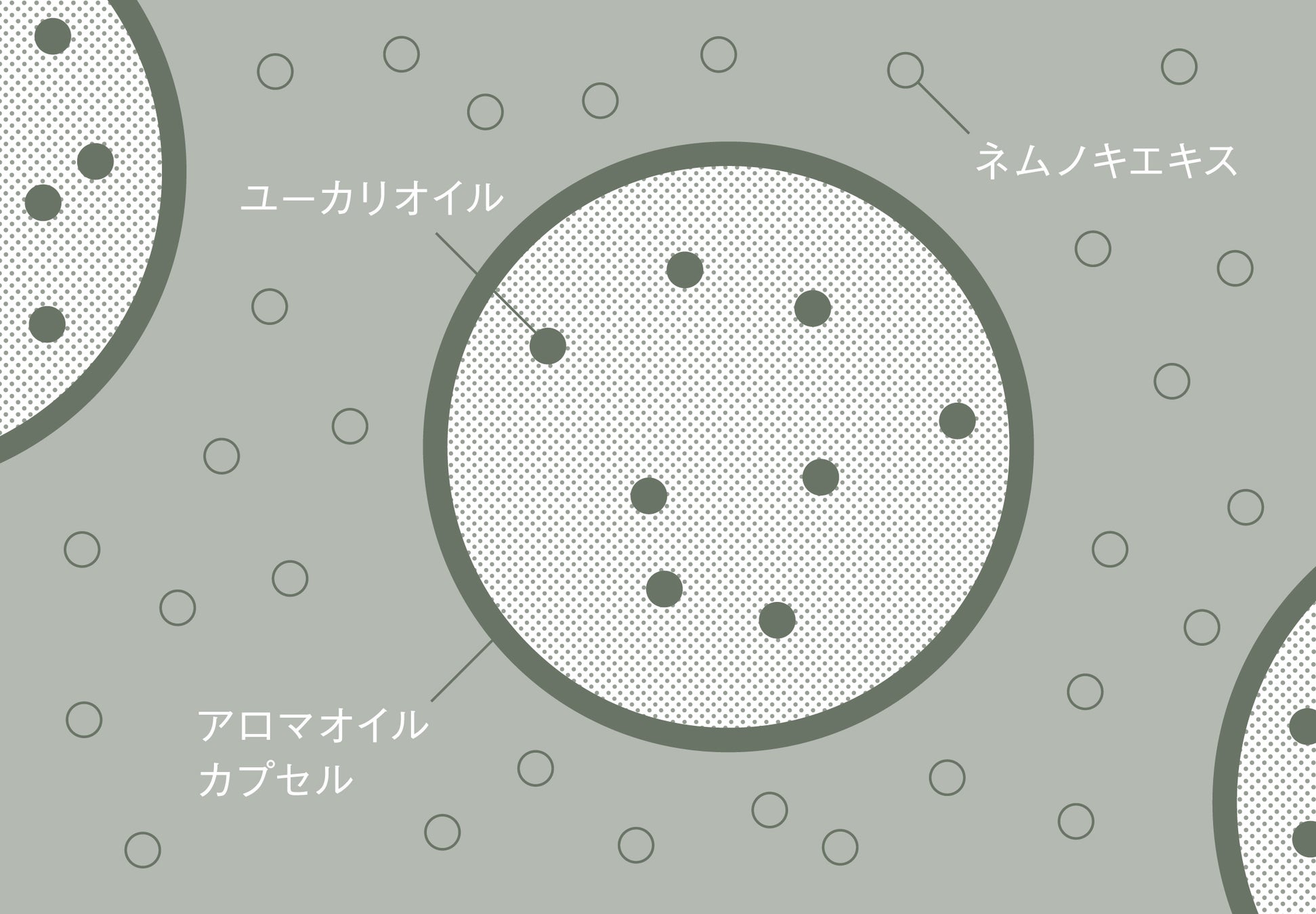 みずみずしいウォータージェルを肌になじませると、アロマオイルカプセルが弾け、シダーウッドなど深い森に誘う香りとともに、 軽やかなユーカリの香りが広がります。