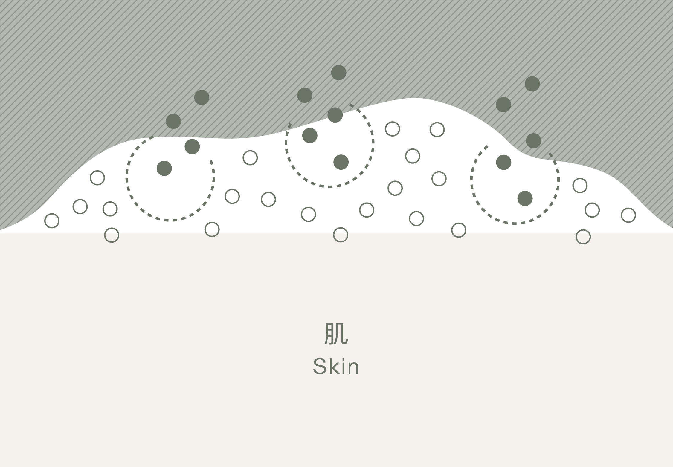 塗布後はカプセルの油分によって肌のうえに膜が形成され、うるおいのヴェールがひと晩中肌を包み込みます。