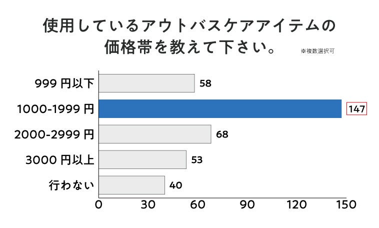 そして、使用しているアウトバスケアの価格帯についてもアンケートを行っています。