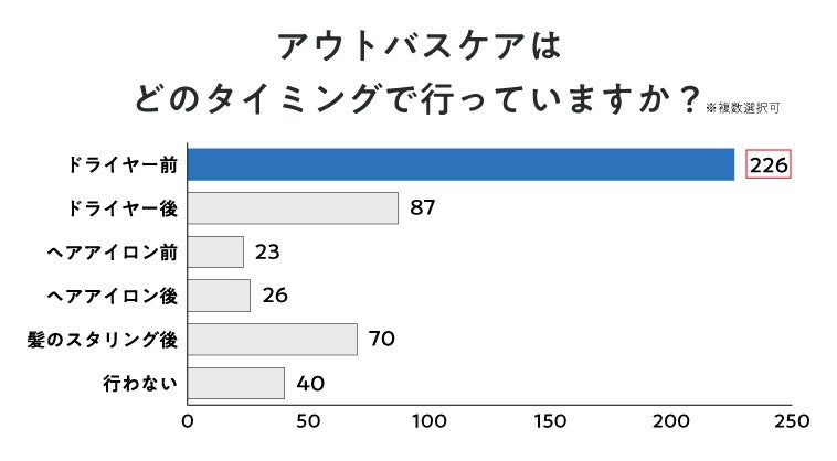 また、アウトバスケアを行うタイミングについての質問は下記のような結果が出ました。