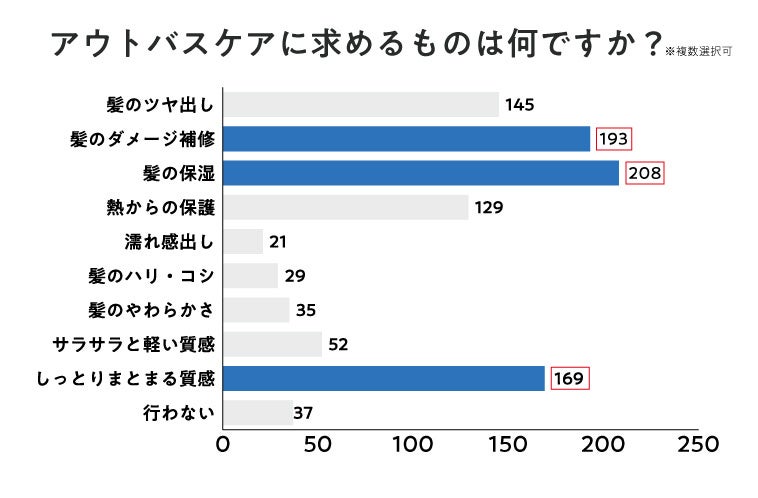 - アウトバスヘアケアに求めるものは保湿とダメージ補修