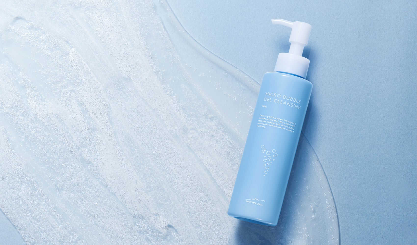 『マイクロバブルジェルクレンジング』は、マイクロバブルの「洗浄力」と自ら発泡する「発泡力」に着目して開発され、手で擦らずにメイクや古い角質を浮かして落とすことができる、肌にやさしい摩擦レスクレンジングとして誕生しました。