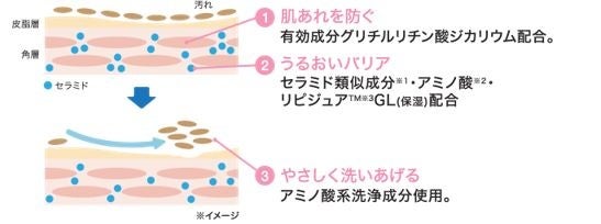 3つのアプローチで肌をいたわり洗う「マイルドプロテクト技術」を採用。肌に大切な成分は落としすぎず、し
