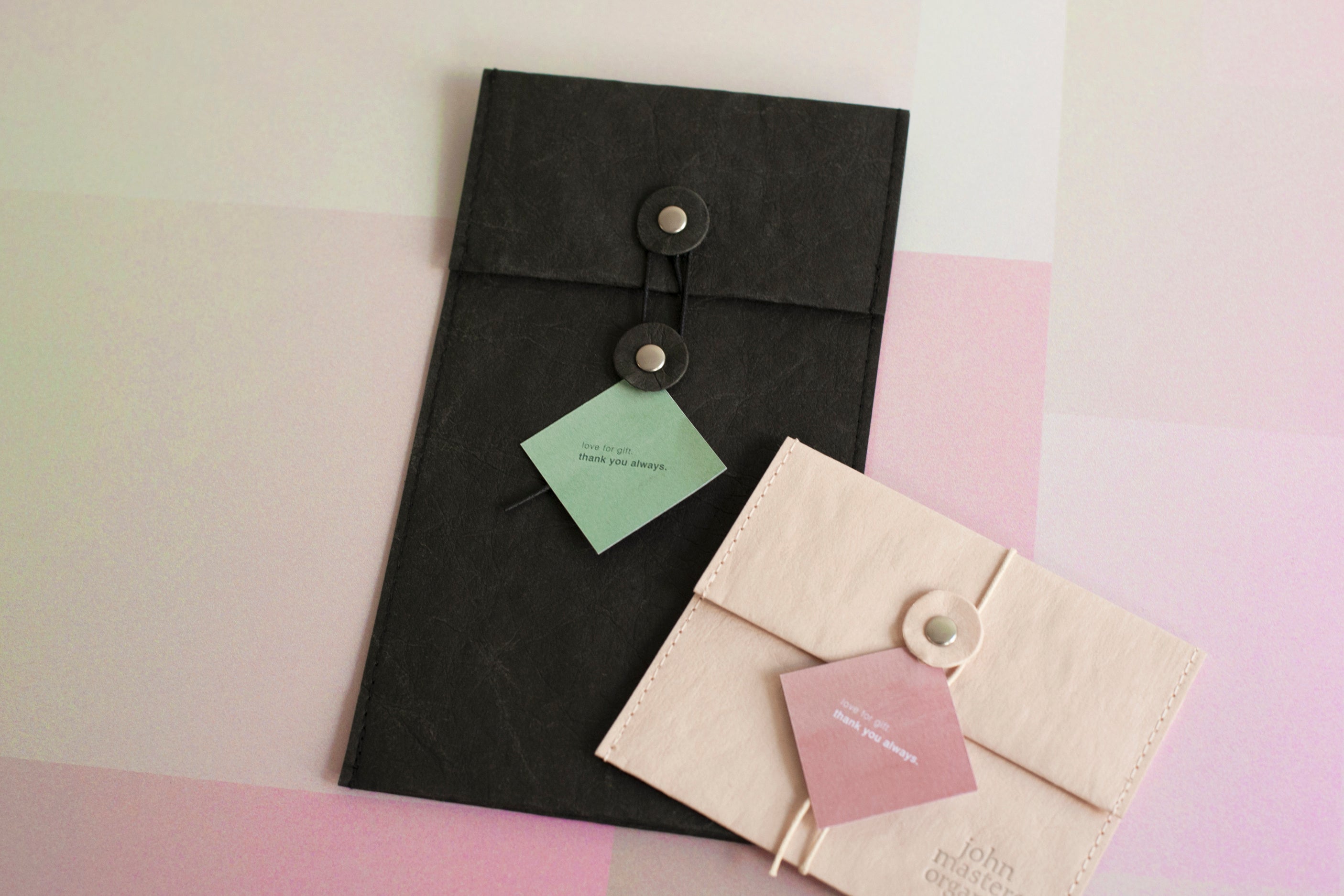 素材にウォッシャブルペーパーを採用し、カードケースやアクセサリー入れとしてリユースできます。ジェンダーレスに使えるシックなブラックとニュアンスカラーが女性らしいピンクは限定カラー。