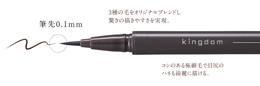 メイクが好きでこだわりがある人へ向けたポイントメイクブランドkingdom(キングダム)は、発色が良く、滲みにくいと大人気のキングダム リキッドアイライナーWPを大幅リニューアル。