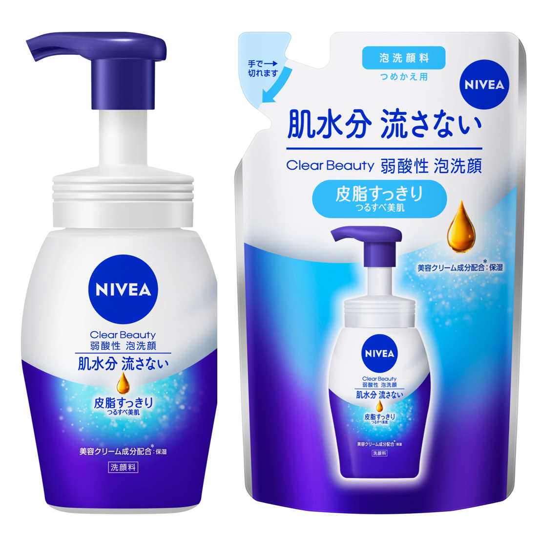 ニベア花王株式会社(社長・岩﨑昌哉)は、2023年3月11日、『ニベア クリアビューティー弱酸性泡洗顔 皮脂すっきり』を新発売いたします。昨今増加中の、“鼻周りはべたつく”けれど“頬は乾燥する”といった混合肌タイプの方でも、テカリやべたつきなどの皮脂汚れをすっきり洗い上げながら、肌の水分は流さず、うるおいを守って洗う泡洗顔料です。