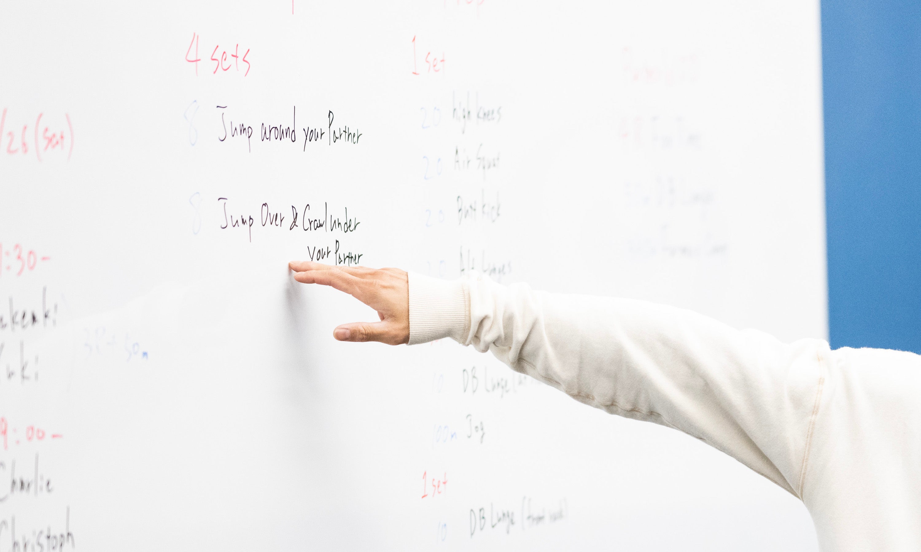 どなたでもお気軽に参加頂けるよう都度利用(ドロップイン)も可能としており、メインで実施しているクロスフィットは、参加者のワークアウト結果がホワイトボードに記録される他、チームやペアで結果を競うような競技的要素を取り入れることで参加者間の仲間意識を育てることにも繋がります。