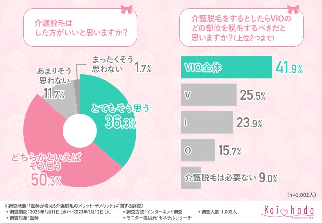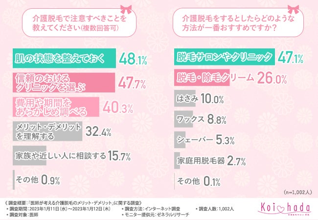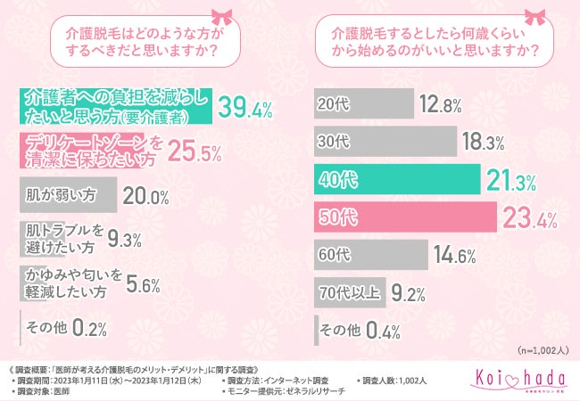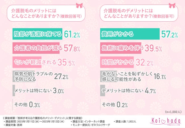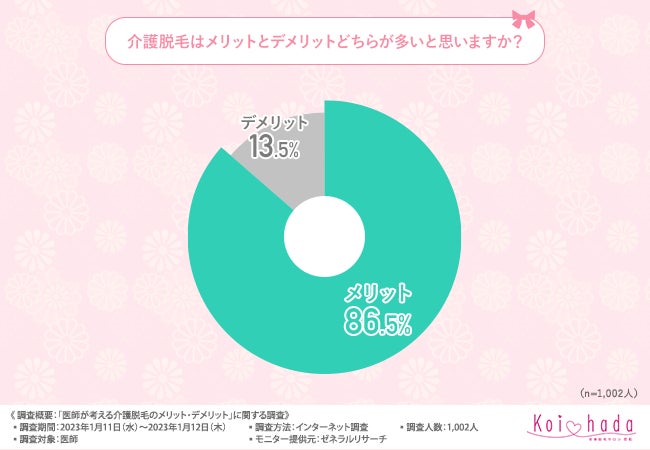そこで、脱毛サロン「恋肌」(https://www.koi-hada.jp/lplj_lv/lp03/?refmedia=142)は、医師を対象に、「医師が考える介護脱毛のメリット・デメリット」に関する調査を行いました。