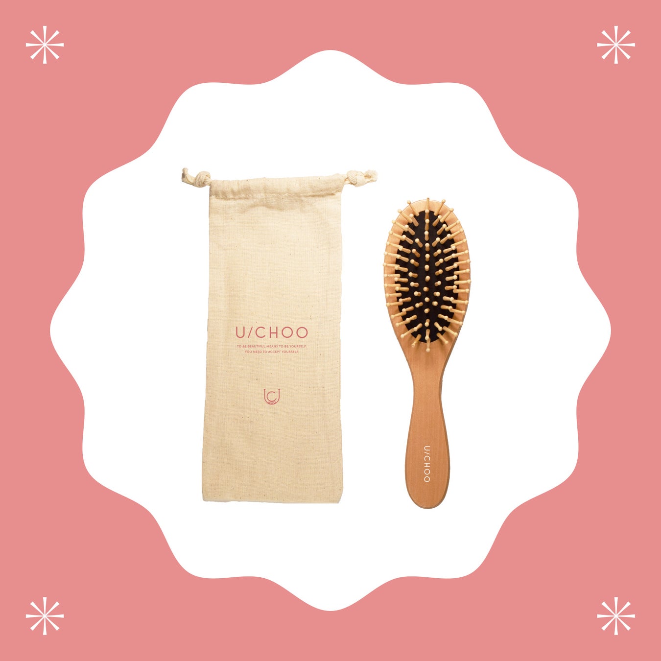 お客様に先着数量限定にて「U/CHOOオリジナルヘアブラシ(巾着付き)」