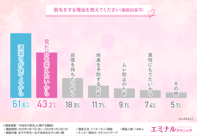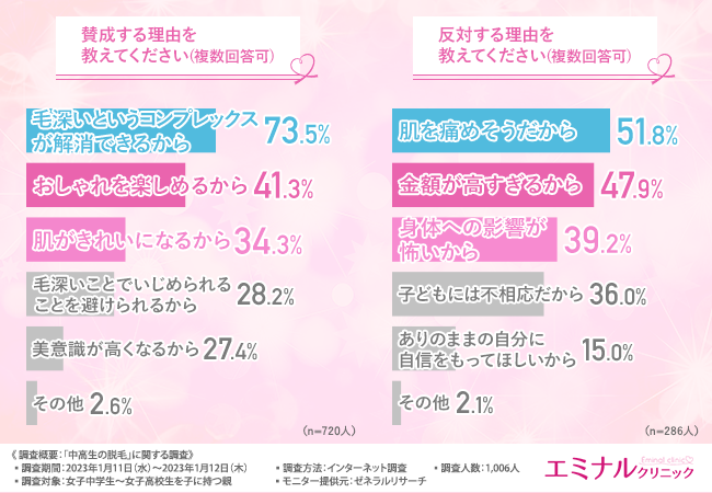今回、「中高生の脱毛」に関する調査を実施したエミナルクリニック(https://eminal-clinic.jp/lp01/?refmedia=11073)では、