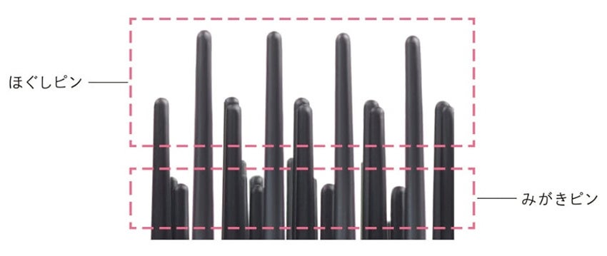 ①ほぐしピンとみがきピンによる三段構造で、さらツヤを実現。