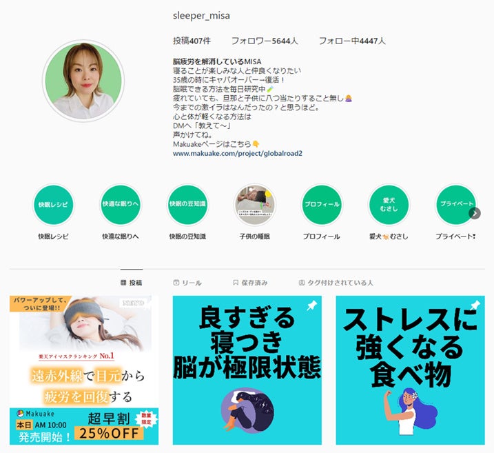 「眠りの案内人 SleepPrincess」では、今すぐできる快眠法・快眠マッサージ・快眠レシピなど、ユーザー様の役に立つ快眠情報をInstagramやYouTubeで配信中!