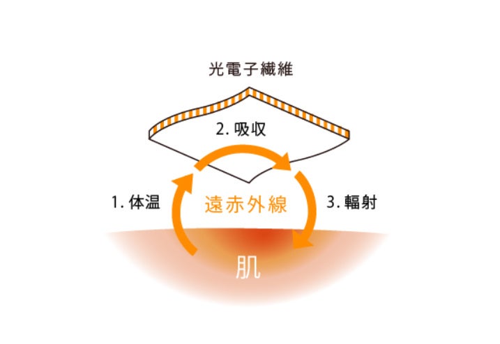 体温を吸収し、光電子が吸収、熱エネルギーを輻射するという好循環が生まれます。