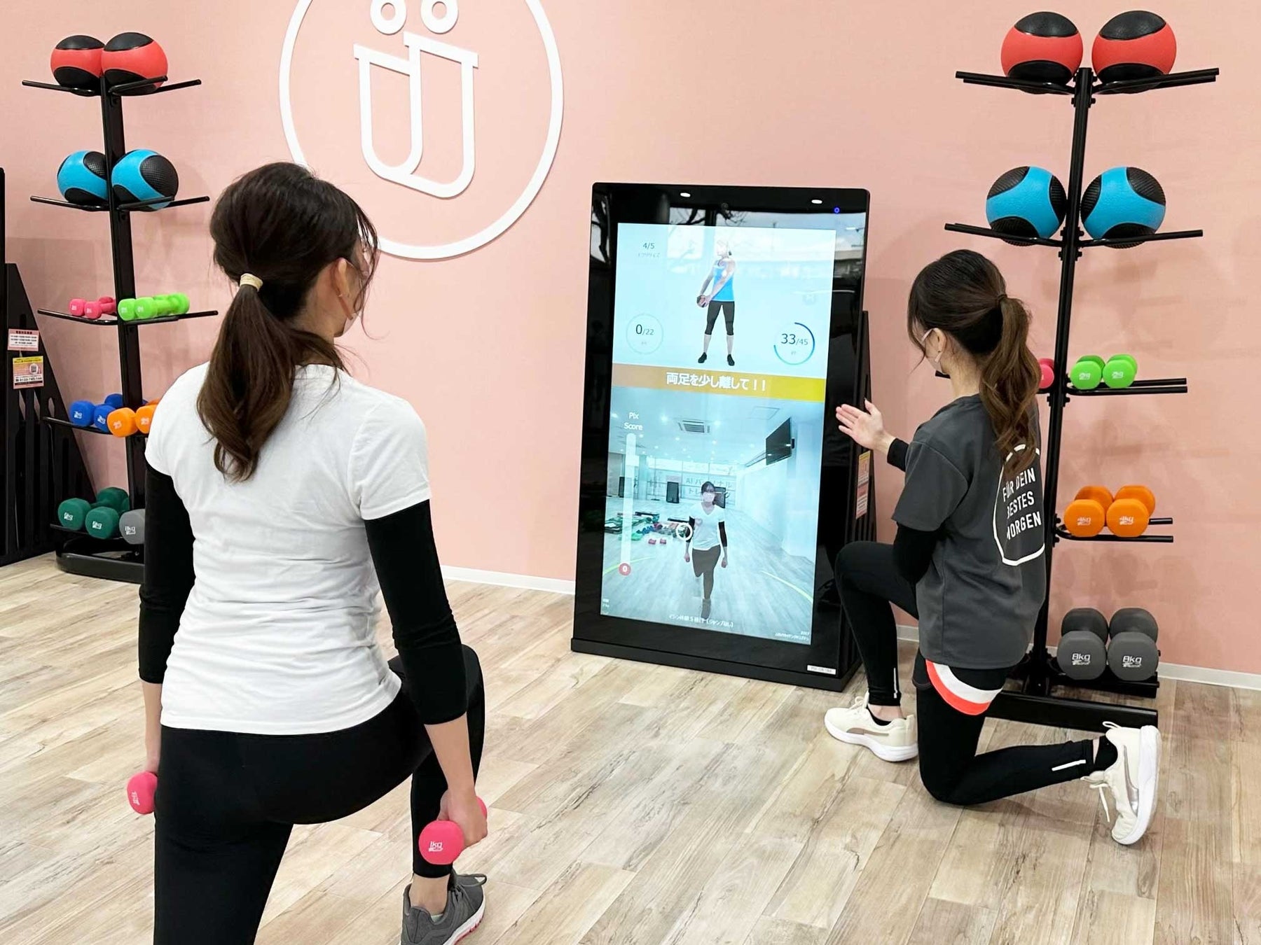 マシンのモニター画面上部に映るAIトレーナーの動きにあわせて動く新感覚のパーソナルトレーニング