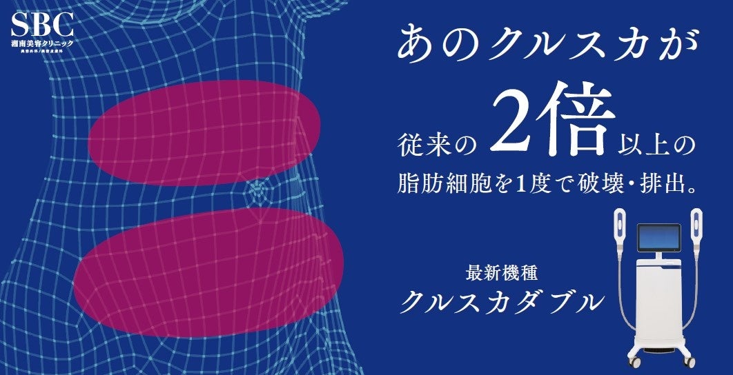 全国展開する美容医療グループである「湘南美容クリニック」(運営・SBCメディカルグループ、相川佳之・代表、東京都新宿区)は、最新の医療技術で切らずに、脂肪細胞自体の数を減らすことで、部分痩せを叶えるメディカルサイズダウン シリーズより、新治療「クルスカダブル(クールスカルプティング® エリート)」を開始し、2023年1月28日より値下げ、新価格にて提供を開始します。クルスカダブル(クールスカルプティング® エリート)は、消費者の「より広範囲の脂肪を一度に減らしたい」というニーズに応えて誕生した、 クールスカルプティング®(クルスカ)の上位治療です。