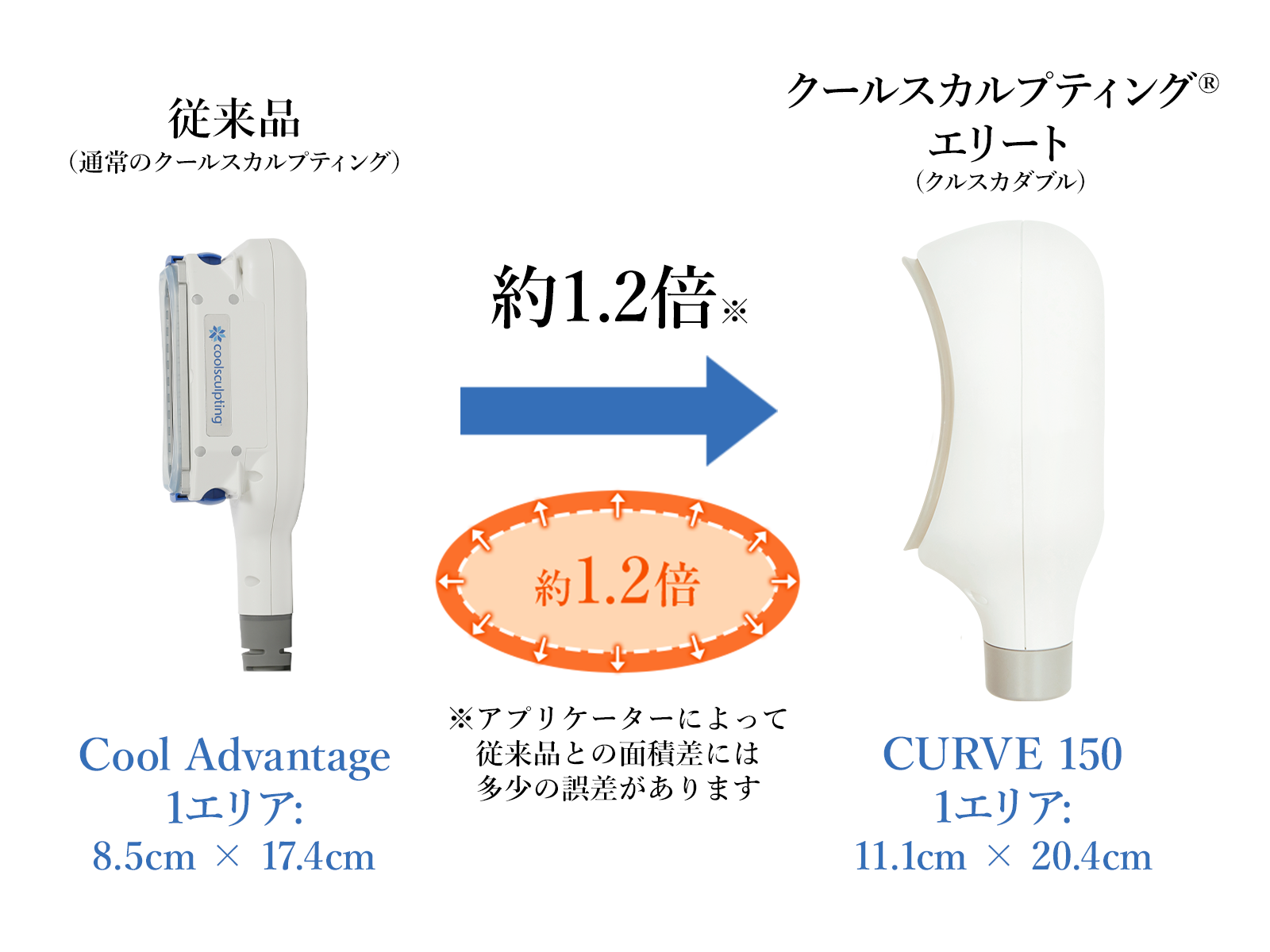 1エリアあたりのサイズが従来の「クールスカルプティング® (クルスカ)」より拡大したことで、よりお得に治療を受けることが可能になりました。