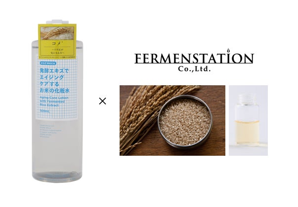ウエルシア薬局のオリジナル商品ブランド「からだWelcia・くらしWelcia」より発売される新商品「発酵エキスでエイジングケアするお米の化粧水」は、さっぱりとした使用感で、乾燥しがちなお肌にうるおいを与え、ふっくらとしたつやのあるお肌に導く化粧水です。ファーメンステーションの「米もろみ粕エキス」は本商品のメイン成分として配合されています。