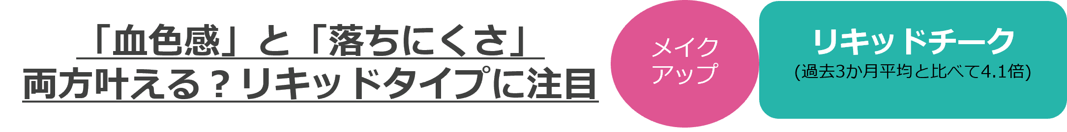 液体タイプのチークを指す「リキッドチーク」というワードが増加しています。クチコミを見てみると、昨今のメイクトレンドである「血色感」の演出としても、マスク生活での「マスクへのつきづらさ・落ちにくさ」としても、注目されているアイテムであるようです。