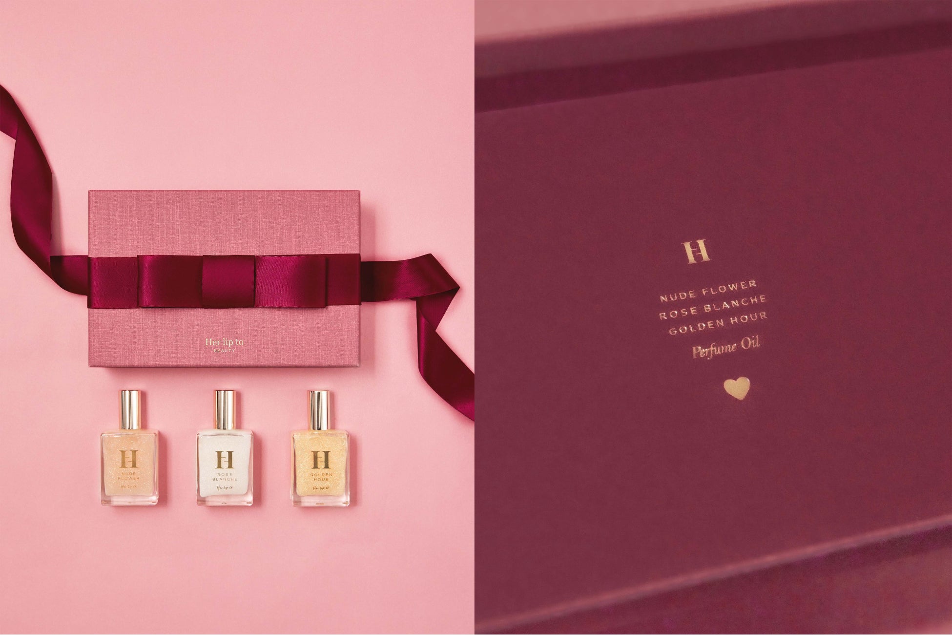 Her lip to BEAUTYの代表的なアイテムでもあるPerfume Oilが、ミニサイズで登場しました。Her lip to BEAUTYで愛されている5つの香りの中から選ばれたのは、これからの季節にぴったりなNUDE FLOWER・ROSE BLANCHE・GOLDEN HOURの3種。「H」のロゴがあしらわれたボトルは今回のセットのための限定デザインとなっており、携帯用としてもご利用いただけます。