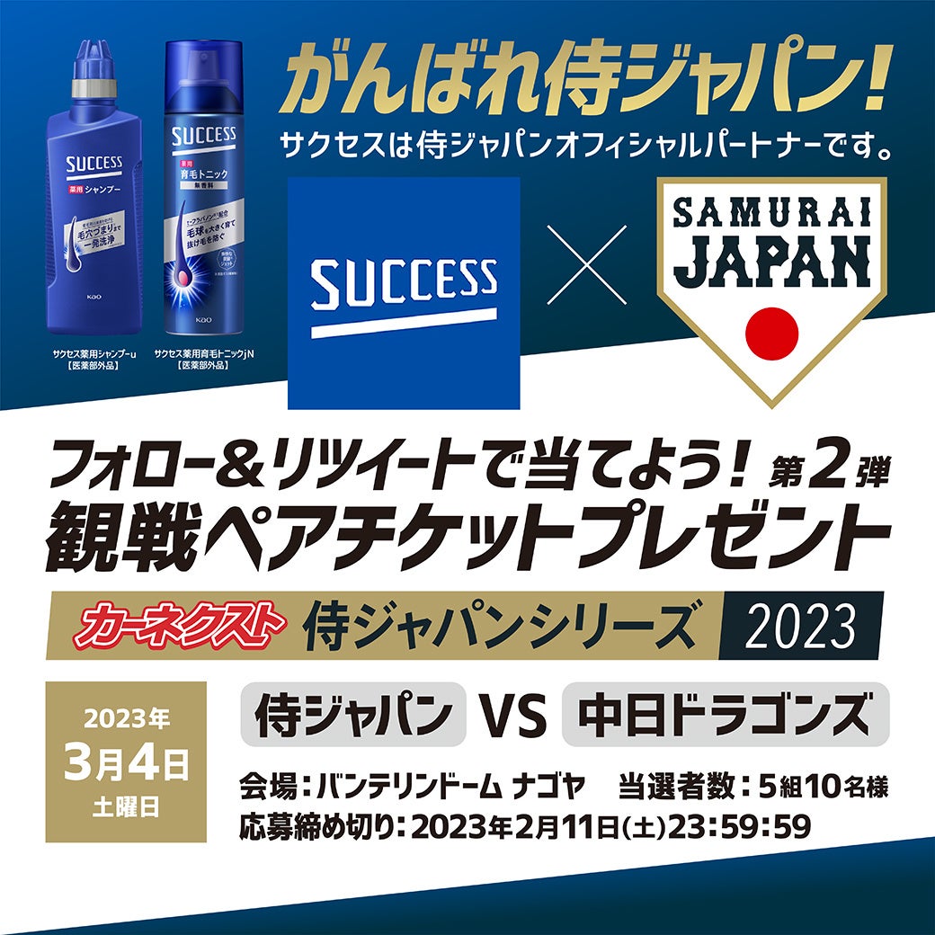 この就任を記念し、2023年1月31日(火)より花王サクセス公式Twitterにて、「カーネクスト侍ジャパンシリーズ2023」観戦チケットが当たるTwitterキャンペーンを実施します。